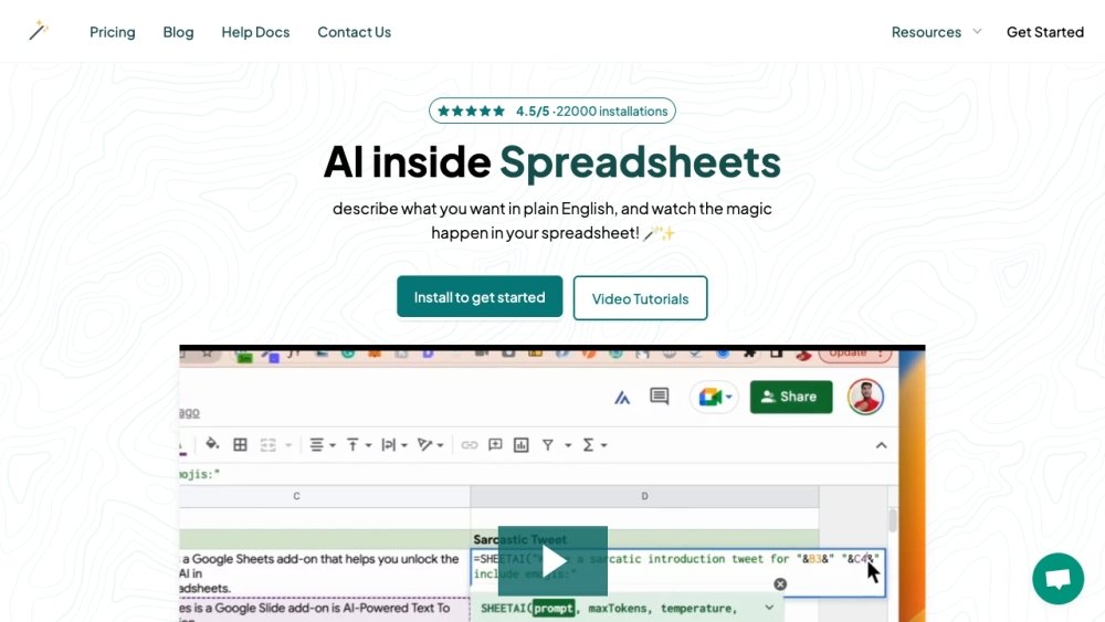 AI Text GeneratorSheetAI: SheetAI is an AI-powered tool designed to transform text instructions into Google Sheet formulas quickly. It allows users to leverage AI directly within Google Sheets to automate tasks, generate content, and analyze data. SheetAI can remember context, train on specific data, and provide instant answers to questions asked in plain English, all within the spreadsheet environment.