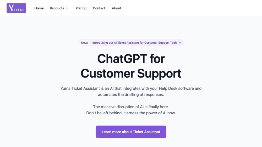 AI ChatbotYuma AI: Yuma Ticket Assistant is an AI that integrates with your Help Desk software to automate response drafting for customer tickets. Improve efficiency and support quality, increase customer satisfaction, and boost revenue. Yuma is leveraging Generative AI to automate customer support. We help large Shopify businesses automating more than 40% of their support tickets.