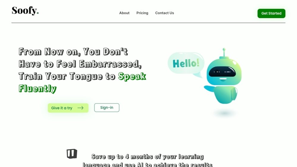 Soofy ist eine KI-Sprachlern-App, die sich auf Praxis und reale Szenarien konzentriert. Sie bietet Funktionen zur Verbesserung von Aussprache, Schreiben und Konversation durch Debatten und Rollenspiele mit einer KI.