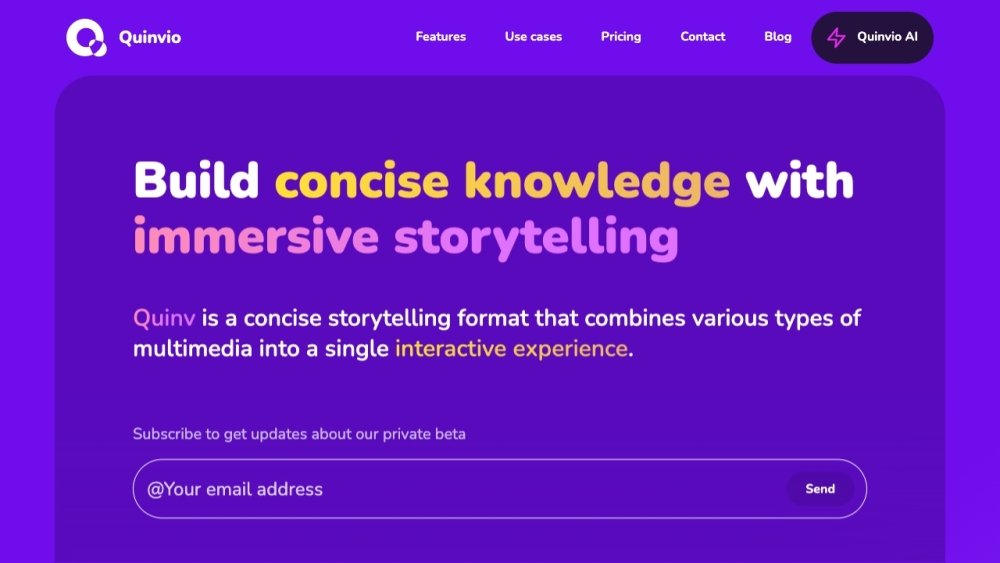 AI SummarizerQuinvio AI: Quinvio AI is a platform designed to help users create presentations faster and more efficiently using AI. It offers features like AI-powered brainstorming, copywriting, and styling to streamline the presentation creation process. Users can create video narrations, voiceovers, or keynotes without needing to use a camera, microphone, or build slides manually. The platform also allows users to convert websites into video presentations.