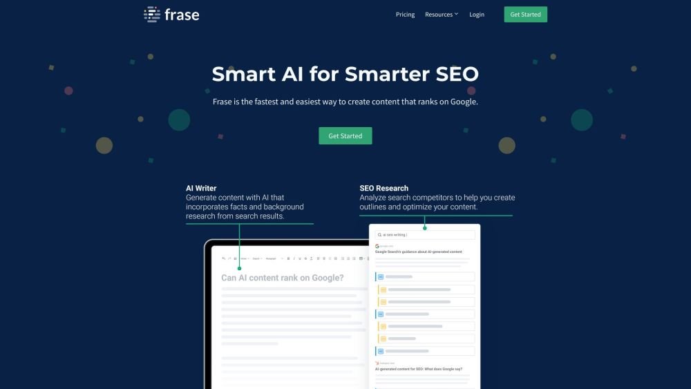AI SEO ToolsFrase: Frase is an all-in-one SEO and AI writing platform that helps content creators go from keyword to well-researched, SEO-optimized articles faster and better. It offers AI writing tools for copywriting, summarizing, paraphrasing, and advertising. Frase analyzes top search results to surface key topics, headers, questions, and stats, enabling users to build data-backed content briefs, generate first drafts with AI, and optimize existing content to improve search engine rankings.