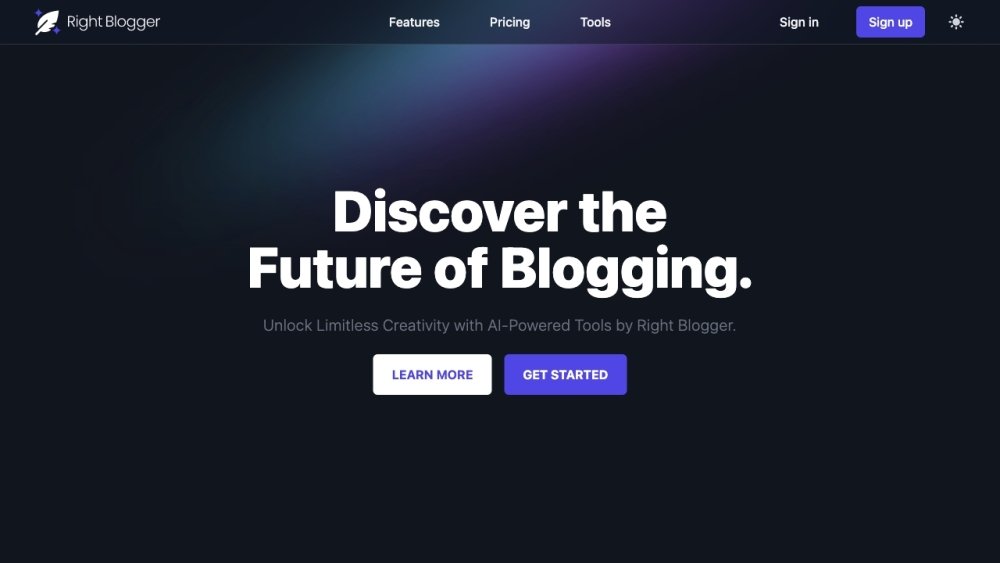 AI Writing AssistantsRightBlogger: RightBlogger is an AI-powered content creation tool designed for bloggers. It offers over 40 (and growing to 80+) AI-powered tools to help speed up the blogging workflow, overcome writer's block, and generate high-quality content. It assists with tasks like article writing, keyword research, generating blog post ideas, creating outlines, and more.