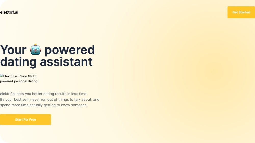 Elektrif.ai: Elektrif.ai uses GPT3 to generate personalized conversation starters, rephrase your messages to be more engaging, etc. to help you be your best self, never run out of things to talk about, and spend more time actually getting to know someone.